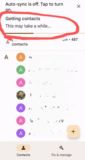 I just got a new Google Pixel 6a. After setting up, I found out everytime I open the Contacts app, the message "Getting contacts, this may take a while..", keeps showing up, with the updating bar below moving non stop, as if it is updating the contact list all the time.